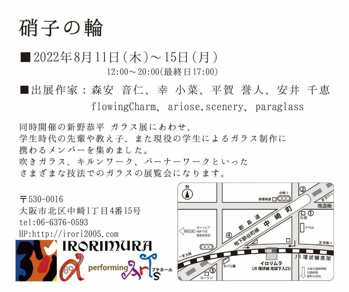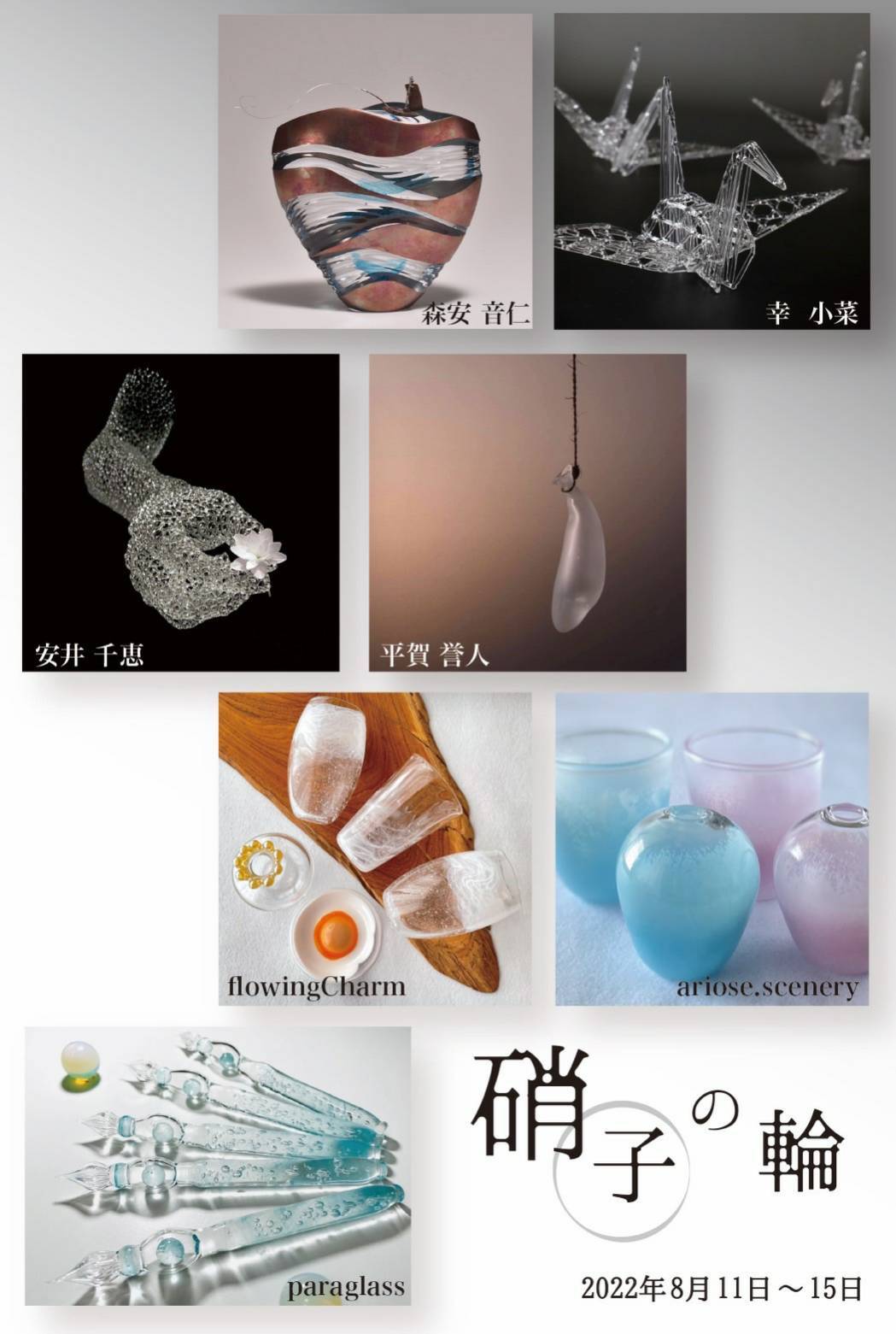 2022-08-092022-08-09 ”ガラスの輪” 展示会のお知らせ 今年の夏は大阪•中崎町でグループ展をします!! 吹きガラスの他、バーナーワーク、キルンワーク等の様々なガラスの技法で制作した作品が集まります♪ 硝子の輪 暑い時期ですので、ガラスを見て涼んで頂けると嬉しいです! ←Back 共有: X で共有 (新しいウィンドウで開きます) X Facebook で共有 (新しいウィンドウで開きます) Facebook いいね 読み込み中…